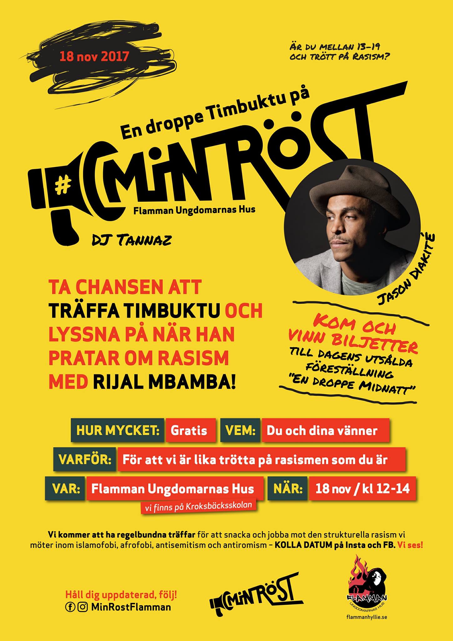 Ta chansen att träffa Timbuktu och lyssna på när han pratar om rasism med Rijal Mbamba!